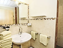 4 -sobni apartman 70 m2 na 1. katu. Prostrano i svijetlo, komforno i udobno uređen: predsoblje. 1 bračna soba s TV-om sa sat. prijemnikom (plosnatim TV ekranom). 1 velika soba s 1 kaučem za 2 osobe, 1 bračnim krevetom i tušem/WC-om. 1 soba s 2 kreveta. Velika kuhinja/dn. boravak (4 ploče za kuhanje, pećnica, perilica za suđe, mikrovalna pećnica) s stolom za blagovanje i TV-om sa sat. prijemnikom (plosnatim TV ekranom). Izlaz u vrt, na terasu. Tuš, odv. WC. Velika terasa 25 m2, prema jugu i prema istoku, veliki vrt 55 m2. Garnitura za sjedenje, vrtni roštilj. Prekrasan panoramski pogled na planine, krajolik i mjesto. Na raspolaganju: dječji krevetić, sušilo za kosu. Internet (wireless LAN [WLAN]). Dodatna informacija: prikladno za obitelji. Apartman za nepušače. 1 kućni ljubimac / pas dozvoljen. Vlastiti ulaz.- postrojenja