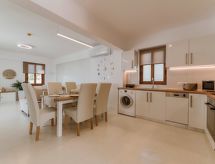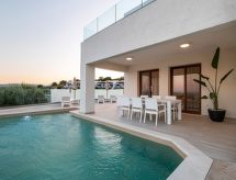 "Gennadi Vista", 4 -sobna vila 120 m2 na 2 etaže. Prostrano i svijetlo, lijepo i moderno uređena: otvoreni dnevni boravak/blagovaona s TV-om sa sat. prijemnikom (plosnatim TV ekranom). Izlaz na terasu, na bazen. 1 bračna soba s 1 bračnim krevetom i tušem/WC-om. Otvorena kuhinja (pećnica, perilica za suđe, 4 staklokeramičke ploče za kuhanje, toster, kuhalo za vodu, mikrovalna pećnica, el. aparat za kavu). Odv. WC. Klima uređaj. Gornji kat: (stepenice bez rukohvata) 2 bračne sobe, svaka soba s 1 bračnim krevetom. Izlaz na balkon. Tuš/WC. Klima uređaj. 2 velika balkona, velika terasa (djelomično natkrita). Vrtni roštilj. Lijep pogled na more i krajolik. Na raspolaganju: perilica za rublje, sef, glačalo, sušilo za kosu. Internet (wireless LAN [WLAN], besplatan). 00001146311- postrojenja
