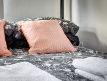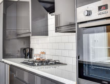 5 -sobna kuća na 3 etaže. Prostrano i svijetlo, komforno i ukusno uređena: otvoreni dnevni boravak s TV-om, plosnatim TV ekranom i DVD-om. Otvorena kuhinja (4 ploče za kuhanje, pećnica, mikrovalna pećnica, zamrzivač) s stolom za blagovanje, TV-om (plosnatim TV ekranom). Odv. WC. Grijanje. Gornji kat: 1 bračna soba s 1 bračnim krevetom. 2 sobe, svaka soba s 1 x 2 kreveta na kat. Kada/tuš/WC. Grijanje. 2. Gornji kat: 1 bračna soba s 1 bračnim krevetom i tušem/WC-om. Grijanje. Garnitura za sjedenje. Lijep pogled na na grad. Na raspolaganju: perilica za rublje. Internet (wireless LAN [WLAN], besplatan). Dodatna informacija: kuća za nepušače.- postrojenja