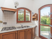 "Gigli (REI226)", 4 -sobna kuća 85 m2. Svrsishodno uređena: dnevno-spavaća soba s 1 kaučem za 1 osobu, otvorenim kaminom, stolom za blagovanje i TV-om sa sat. prijemnikom. 1 soba s 1 bračnim krevetom. 1 soba s 1 bračnim krevetom i tušem/WC-om. 1 soba s 2 kreveta. Otvorena kuhinja (Plinski štednjak, 4 plamena za kuhanje, mikrovalna pećnica). Tuš/WC. El. grijanje, klima uređaj. Terasa (djelomično natkrita). Garnitura za sjedenje. Na raspolaganju: perilica za rublje, dječji krevetić do 2 godine (uz doplatu). Internet (wireless LAN [WLAN], uz doplatu). Najviše 1 kućni ljubimac / pas dozvoljen.- postrojenja