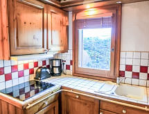 3 -sobni apartman 48 m2, u prizemlju. Dnevni boravak/blagovaona s TV-om. Izlaz na balkon. 1 soba s 1 franc. krevetom (160 cm, dužina 190 cm), tušem. Izlaz na balkon. 1 soba s 2 kreveta (80 cm, dužina 190 cm). Kuhinjska niša (perilica za suđe, 4 staklokeramičke ploče za kuhanje, kuhalo za vodu, el. aparat za kavu, kombinirana mikrovalna pećnica). Kada, odv. WC. 2 balkona, prema jugu i prema jugozapadu. Balkonski namještaj. Vrlo lijep pogled na planine. Na raspolaganju: Internet (wireless LAN [WLAN], besplatan). Dodatna informacija: TV samo FR. Protupožarni alarm.- Značajke smještaja