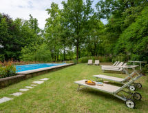 Rustikalna obiteljska kuća "Giorgio". 5 km od centra mjesta Ferrere, 19 km od centra mjesta Asti, 28 km od centra mjesta Alba, na padini, u zelenom. Za samostalno korištenje: prirodno ostavljena parcela 5'000 m2 (ograđena) - travnjak i drveće, livada, bazen (iznad zemlje) (12 x 4 m, 140 cm dubok, sezonska dostupnost: 15.May. - 15.Oct.). Vanjski tuš, terasa, vrtna garnitura za sjedenje, roštilj. Bazen održava vlasnik/vrtlar. 900 m dugački neravan prilaz autom. Parking (za 3 automobila) uz kuću na parceli. Trgovina 3 km, supermarket 5 km, željeznička postaja "Asti" 19 km. U blizini: Turin 40 km.Interior