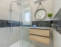 3 -sobna kuća 88 m2. Prostrano i svijetlo, potpuno renovirana godine 2022, moderno i stilski uređena: dnevni boravak/blagovaona s stolom za blagovanje, TV-om sa sat. prijemnikom, klima uređajem i grijanjem na topli zrak. Izlaz na mjesto za sjedenje u vrtu. 1 soba s 1 franc. krevetom (150 cm, dužina 190 cm). 1 soba s 1 franc. krevetom (150 cm, dužina 190 cm). Velika kuhinja (pećnica, perilica za suđe, 3 Indukcione ploče, toster, kuhalo za vodu, mikrovalna pećnica, zamrzivač, el. aparat za kavu). Tuš/WC. Vrtna terasa 80 m2. Garnitura za sjedenje, vrtni roštilj. Na raspolaganju: perilica za rublje, glačalo, sušilo za kosu. Internet (wireless LAN [WLAN], besplatan). Dodatna informacija: kuća za nepušače. 1 kućni ljubimac / pas dozvoljen. TV samo FR, DE, ES. R00000001- postrojenja