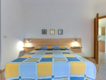 2 -sobni apartman 45 m2, u prizemlju. Svrsishodno uređen: dnevno-spavaća soba s 1 kaučem za 2 osobe (dužina 180 cm), stolom za blagovanje i TV-om sa sat. prijemnikom. Izlaz na terasu. 1 soba s 1 franc. krevetom (160 cm), klima uređajem. Kuhinjska niša (4 plamena za kuhanje). Tuš/bidet/WC. Grijanje, klima uređaj. Terasa 17 m2. Garnitura za sjedenje. Lijep pogled na more. Na raspolaganju: mrežice protiv komaraca. Internet (wireless LAN [WLAN], besplatan). Parking (natkrit, ograđen, 1 automobil) na 20 m. Dodatna informacija: apartman za nepušače. Vlastiti ulaz. Na licu mjesta nema naplate dodatnih troškova.- postrojenja
