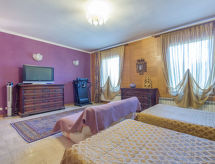 Vrlo lijepa, komforna vila "Giulia", na 2 kata, zasebna, godina izgradnje 1960, renovirana godine 2004. U samom mjestu 10 km od centra mjesta Rome, u području Aurelio, sunčano mjesto u četvrti s vilama, 20 km od mora, 20 km od plaže. Za samostalno korištenje: veliki, lijepi, njegovani vrt 8'000 m2 (ograđen) - cvijeće i drveće, bazen (22 x 8 m, 150- 350 cm dubok, sezonska dostupnost: 01.Apr. - 30.Oct.). Nepravilan oblik bazena. Mjesto za sjedenje, pergola, terasa (150 m2), vrtna garnitura za sjedenje. Dnevno kućna pomoćnica moguća. Parking (za 3 automobila, natkriti) uz kuću. Supermarket, restoran, bar 500 m, autobusna postaja "Casale Lumbroso/Severi 906-088" 20 m, park "Hydromania Water Park" 1.2 km. U blizini: Fiumicino airport 15 km, Vatican City 10 km, Piazza Navona, Piazza di Spagna, Colosseo, Fori imperiali 13 km. Dodatna informacija: preporučljiv vlastiti prijevoz. Grupe mladih samo na upit. Životinje u susjedstvu.Interior