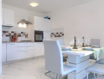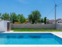 3 -sobna kuća 90 m2. Dnevni boravak/blagovaona s 1 kaučem za 1 osobu (140 cm, dužina 200 cm), TV-om sa sat. prijemnikom (plosnatim TV ekranom), klima uređajem. Izlaz na terasu. 1 soba s 1 franc. krevetom (180 cm, dužina 200 cm), TV-om sa sat. prijemnikom (plosnatim TV ekranom), klima uređajem. 1 soba s 1 franc. krevetom (180 cm, dužina 200 cm), tušem/WC-om i TV-om sa sat. prijemnikom (plosnatim TV ekranom), klima uređajem. Otvorena kuhinja (1 ploča za kuhanje, pećnica, perilica za suđe, 3 plamena za kuhanje, mikrovalna pećnica, zamrzivač, el. aparat za kavu). Tuš/WC. Terasa 15 m2 (natkrita). Garnitura za sjedenje. Pogled na bazen. Na raspolaganju: visoka dječja stolica, dječji krevetić, sušilo za kosu. Internet (wireless LAN [WLAN], besplatan).- postrojenja