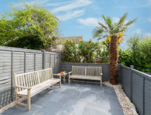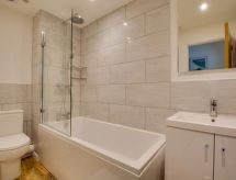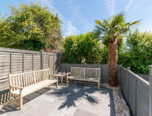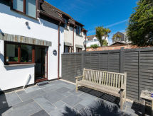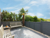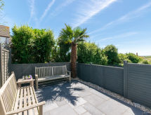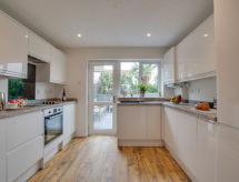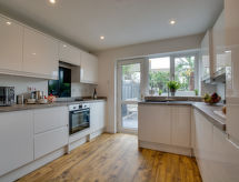 3 -sobna kuća u nizu na 2 etaže. Svijetlo, komforno i ukusno uređena: dnevni boravak/blagovaona s stolom za blagovanje i TV-om (plosnatim TV ekranom), DVD-om. Kuhinja (4 ploče za kuhanje, pećnica, perilica za suđe, mikrovalna pećnica, zamrzivač). Gornji kat: (stepenice bez rukohvata) 1 bračna soba s 1 bračnim krevetom. 1 soba s 2 kreveta. Kada/tuš/WC. Grijanje. Garnitura za sjedenje, vrtni roštilj. Na raspolaganju: perilica za rublje, sušilo za kosu. Internet (wireless LAN [WLAN], besplatan). Dodatna informacija: kuća za nepušače. TV samo EN.- Značajke smještaja
