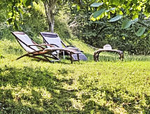 4 -sobna kuća 100 m2 na 2 etaže, prema jugozapadu. Svrsishodno i komforno uređena: dnevni boravak/blagovaona s otvorenim kaminom i TV-om (plosnatim TV ekranom). 1 soba s 1 krevetom i tušem/WC-om. Izlaz u vrt. Kuhinja (pećnica, perilica za suđe, 4 plamena za kuhanje, toster, kuhalo za vodu, mikrovalna pećnica, zamrzivač, el. aparat za kavu). Gornji kat: (kružne stepenice) 1 bračna soba. 1 soba s 2 kreveta. Tuš/bidet/WC. Grijanje na plin (uz doplatu). Grijanje na raspolaganju samo od 01.11. do 15.04. Pogled na krajolik. Na raspolaganju: Internet (wireless LAN [WLAN], besplatan). Parking (natkrit) uz kuću.- postrojenja