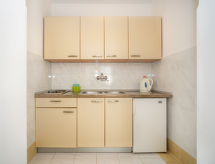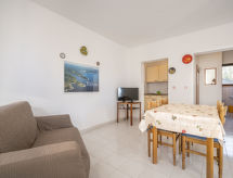 3 -sobni apartman 45 m2, u prizemlju. Dnevni boravak/blagovaona s TV-om sa sat. prijemnikom (plosnatim TV ekranom). Izlaz na terasu. 1 soba s 1 bračnim krevetom (2 x 80 cm, dužina 200 cm). 1 soba s 2 kreveta (80 cm, dužina 200 cm). Otvorena kuhinja (2 ploče za kuhanje, el. aparat za kavu). Tuš/WC. Grijanje (uz doplatu). Terasa 15 m2 (natkrita). Garnitura za sjedenje. Panoramski pogled na more. Na raspolaganju: Internet (wireless LAN [WLAN], besplatan).- postrojenja