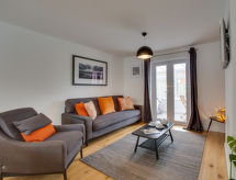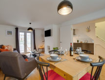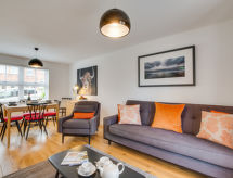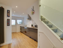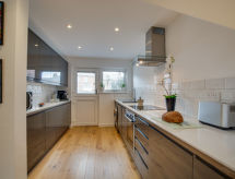 3 -sobna kuća na 2 etaže. Komforno i udobno uređena: dnevni boravak/blagovaona s stolom za blagovanje i TV-om (plosnatim TV ekranom), muzičkom linijom i DVD-om. Otvorena kuhinja (4 ploče za kuhanje, pećnica, perilica za suđe, mikrovalna pećnica, zamrzivač, el. aparat za kavu). Gornji kat: 1 bračna soba s 1 bračnim krevetom i TV-om (plosnatim TV ekranom). 1 soba s 2 kreveta. Tuš/WC. Grijanje na plin. Vrtna terasa, vrt. Garnitura za sjedenje, zimski vrt. Na raspolaganju: perilica za rublje, sušilo za kosu. Internet (wireless LAN [WLAN], besplatan). Parking. Dodatna informacija: nije prikladno za malu djecu. Nije prikladno za djecu mlađu od 5 godina. Kuća za nepušače.- postrojenja