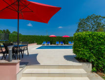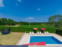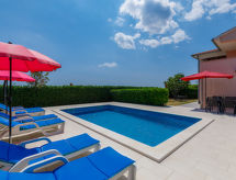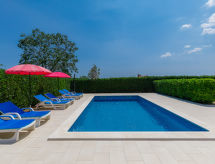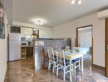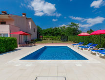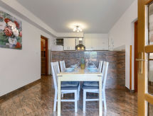 Dvojna kuća "Goga", na 2 kata. U zaseoku Sv. Martin 9 km od centra mjesta Labin, 14 km od mora, u zelenom. Za samostalno korištenje: parcela 700 m2 - bilje, bazen pravokutni (7 x 4 m, 150 cm dubok, sezonska dostupnost: 04.May. - 05.Oct.) s unutarnjim stepenicama. Vanjski tuš, terasa (50 m2), vrtna garnitura za sjedenje, roštilj. Bazen održava vlasnik/vrtlar. U kući: pristup internetu, trampolin, perilica za rublje. Parking (za 4 automobila) uz kuću na parceli. Trgovina 200 m, supermarket 9 km, restoran 200 m, šljunčana plaža 14 km. Vlasnik ne prihvaća grupe mladih. Dodatna informacija: zračna luka 50 km od kuće. Dvojna kuća se sastoji od 2 apartmana koji se iznajmljuju kao cjelina.Interior