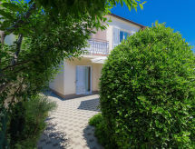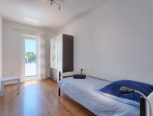 4 -sobna polovica dvojne kuće 128 m2 na 2 etaže. Dnevni boravak/blagovaona s 1 kaučem za 2 osobe (140 cm, dužina 200 cm), TV-om sa sat. prijemnikom (plosnatim TV ekranom). Izlaz na terasu. Kuhinja (4 ploče za kuhanje, pećnica, perilica za suđe, zamrzivač, el. aparat za kavu). Izlaz u vrt. Odv. WC. Gornji kat: predsoblje s klima uređajem. 1 soba s 1 franc. krevetom (160 cm, dužina 200 cm). 1 soba s 1 krevetom (90 cm, dužina 200 cm). Izlaz na terasu. 1 soba s 1 krevetom (90 cm, dužina 200 cm). Kada/bidet/WC. Grijanje (uz doplatu). Terasa 20 m2, terasa 3 m2. Garnitura za sjedenje, vrtni roštilj (prijenosni). Pogled na vrt. Na raspolaganju: sef, sušilo za kosu. Internet (wireless LAN [WLAN], besplatan). 1 kućni ljubimac / pas dozvoljen.- postrojenja