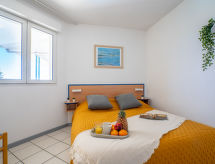 3 -sobni apartman 60 m2. Svijetlo, lijepo uređen: dnevni boravak/blagovaona s 2 kauča za 1 osobu (90 cm, dužina 190 cm), TV-om (plosnatim TV ekranom). Izlaz na terasu. 1 soba s 1 franc. krevetom (160 cm, dužina 200 cm). 1 soba s 2 kreveta (90 cm, dužina 200 cm). Kuhinjska niša (4 ploče za kuhanje, perilica za suđe, toster, kuhalo za vodu, mikrovalna pećnica, el. aparat za kavu). Kada, odv. WC. El. grijanje. Terasa 14 m2. Garnitura za sjedenje. Pogled na bazen. Na raspolaganju: glačalo, sušilo za kosu. Internet (wireless LAN [WLAN], besplatan). Parking br. 304 (natkrit). Dodatna informacija: 1 kućni ljubimac / pas dozvoljen. Protupožarni alarm. 64189000793B7- Značajke smještaja