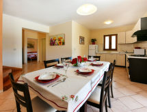 Obiteljska kuća "Goran (PRC609)", na 2 kata. U zaseoku Kmačići 3 km od centra mjesta Sveti Lovreč, 18 km od centra mjesta Poreč, 18 km od mora, u zelenom. Za samostalno korištenje: parcela 1'400 m2, travnjak i bilje, bazen pravokutni (6 x 4 m, 140 cm dubok, sezonska dostupnost: 27.Mar. - 05.Nov.). Vanjski tuš, terasa, vrtna garnitura za sjedenje, roštilj. U kući: pristup internetu, perilica za rublje. Prilaz autom do kuće (100 m bijela cesta). Parking (za 3 automobila) na parceli. Trgovina 3 km, šljunčana plaža 18 km.Interior