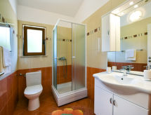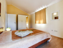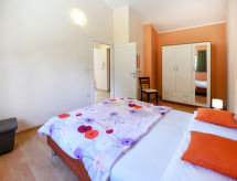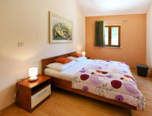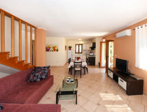 4 -sobna kuća 110 m2 na 2 etaže. Dnevni boravak/blagovaona s otvorenim kaminom i TV-om sa sat. prijemnikom (plosnatim TV ekranom), klima uređajem. Izlaz na terasu. 1 soba s 1 bračnim krevetom. Otvorena kuhinja (4 ploče za kuhanje, pećnica, perilica za suđe, toster, kuhalo za vodu, mikrovalna pećnica, zamrzivač, el. aparat za kavu). Tuš/WC. Gornji kat: predsoblje s klima uređajem. 1 soba s 1 bračnim krevetom. 1 soba s 1 bračnim krevetom. Izlaz na balkon. Kada/bidet/WC. Balkon. Ležaljke. Na raspolaganju: glačalo, dječji krevetić (uz doplatu), drvo (uklj.). Internet (wireless LAN [WLAN], besplatan). Dodatna informacija: kuća za nepušače. Najviše 1 kućni ljubimac / pas dozvoljen.- Značajke smještaja