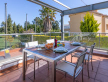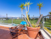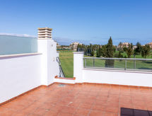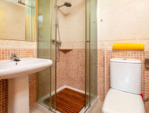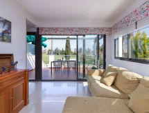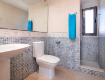 "Gran Olamar Golf", 4 -sobna polovica dvojne kuće 115 m2 na 3 etaže. Svijetlo, lijepo i ukusno uređena: dnevni boravak/blagovaona s digitalnim TV, klima uređajem i grijanjem na topli zrak. Izlaz na terasu. Otvorena kuhinja (pećnica, perilica za suđe, 4 staklokeramičke ploče za kuhanje, mikrovalna pećnica, zamrzivač, el. aparat za kavu). Tuš/WC. Gornji kat: 1 soba s 1 franc. krevetom (160 cm, dužina 190 cm), klima uređajem i grijanjem na topli zrak. Izlaz na terasu. 1 soba s 2 kreveta (90 cm, dužina 190 cm), klima uređajem i grijanjem na topli zrak. 1 soba s 1 krevetom (90 cm, dužina 190 cm), klima uređajem i grijanjem na topli zrak. Tuš/WC. 2 terase. Na raspolaganju: perilica za rublje, glačalo, visoka dječja stolica, dječji krevetić, sušilo za kosu. Internet (wireless LAN [WLAN], besplatan). Dodatna informacija: 1 kućni ljubimac / pas dozvoljen. TV samo ES. R000000001- postrojenja