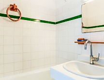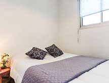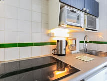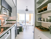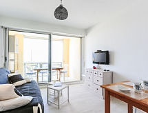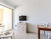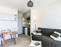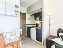 Mimizan-Plage: Residence "Grand Pavois". U samom mjestu 300 m od centra mjesta Mimizan Plage, centralno, prometno mjesto, 150 m od mora, 150 m od plaže, 30 m od rijeke. U kompleksu: dizalo. Trgovina 300 m, supermarket 600 m, restoran 10 m, željeznička postaja "Labouheyre" 30 km, pješčana plaža "la garluche" 150 m, park "Landes Aventure" 6 km, natkriveni bazen 6 km, jezero za kupanje "Aureilhan" 10 km. Golf teren (9 rupa) 6 km, škola jedrenja na dasci 350 m. U blizini: Bordeaux 120 km, Arcachon 70 km, Biscarrosse 40 km, Centre Nautique 7 km, Casino Mimizan Plage. Pješačke staze: Parc naturel régional des Landes.Interior