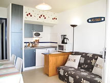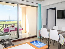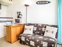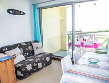 Mimizan-Plage: Residence "Grand Pavois". U samom mjestu 300 m od centra mjesta Mimizan Plage, centralno, prometno mjesto, 150 m od mora, 150 m od plaže, 30 m od rijeke. U kompleksu: dizalo. Trgovina 300 m, supermarket 600 m, restoran 10 m, željeznička postaja "Labouheyre" 30 km, pješčana plaža "la garluche" 150 m, park "Landes Aventure" 6 km, natkriveni bazen 6 km, jezero za kupanje "Aureilhan" 10 km. Golf teren (9 rupa) 6 km, škola jedrenja na dasci 350 m. U blizini: Bordeaux 120 km, Arcachon 70 km, Biscarrosse 40 km, Centre Nautique 7 km, Casino Mimizan Plage. Pješačke staze: Parc naturel régional des Landes.Interior