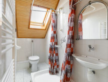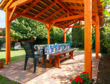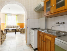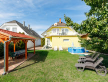 Balatonlelle: Velika kuća "Grandessa", na 2 kata. Centralno, sunčano mjesto. Za samostalno korištenje: vrt 400 m2 (ograđen) - travnjak, travnjak za sunčanje, bazen (iznad zemlje) okrugli (3,6 m promjer, sezonska dostupnost: 01.Jun. - 01.Sep.). U kući: wireless LAN [WLAN], klimatizacija, perilica za rublje. Trgovina živežnim namirnicama 200 m, restoran 300 m, cafe 200 m, plaža s travom 400 m.Interior