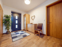 "Naturpark Chalet Grebenzen", 4 -sobna kuća u nizu 130 m2 na 2 etaže. Vrlo komforno i ukusno uređena: predsoblje. Dnevni boravak/blagovaona s 1 kaučem za 2 osobe, stolom za blagovanje i TV-om sa sat. prijemnikom. 1 bračna soba. 1 soba s 1 x 2 kreveta na kat, 1 bračnim krevetom. 1 soba s 1 kaučem za 1 osobu i 1 bračnim krevetom. Otvorena kuhinja (pećnica, perilica za suđe, 4 staklokeramičke ploče za kuhanje, toster, kuhalo za vodu, mikrovalna pećnica, el. aparat za kavu). Tuš/WC, odv. WC, kada/tuš/WC, duplim umivaonikom, Sauna. Komforno uređeno u ladanjskom stilu. Balkon ili terasa. Garnitura za sjedenje. Lijep pogled na planine i mjesto. Na raspolaganju: perilica za rublje, sauna. Internet (wireless LAN [WLAN], besplatan). Garaža (1 automobil). Dodatna informacija: kuća za nepušače. Rezervira se tipski objekt (kuća, apartman) i moguća su manja odstupanja. U slučaju boravka manjeg broja gostiju od maksimalnog kapaciteta objekta, neće biti na raspolaganju sve smještajne jedinice.- postrojenja