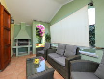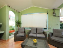 "Greca Piscina (REI238)", 4 -sobna kuća u nizu 65 m2. Svijetlo: dnevni boravak/blagovaona s stolom za blagovanje i TV-om sa sat. prijemnikom. 3 sobe, svaka soba s 1 bračnim krevetom. Otvorena kuhinja (pećnica, perilica za suđe, Plinski štednjak, 4 plamena za kuhanje). 2 x tuš/WC. El. grijanje, klima uređaj. Terasa (natkrita). Garnitura za sjedenje, vrtni roštilj. Pogled na more. Na raspolaganju: perilica za rublje, dječji krevetić do 2 godine (uz doplatu). Internet (wireless LAN [WLAN], uz doplatu).- postrojenja