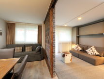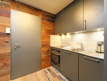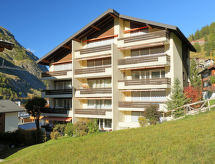 1 -sobni apartman 45 m2, prema jugu. Potpuno renoviran godine 2016, lijepo i udobno uređen: dnevno-spavaća soba s 2 kauča za 2 osobe (140 cm, dužina 200 cm), stolom za blagovanje i TV-om. Izlaz na balkon. Mala kuhinja (pećnica, 4 staklokeramičke ploče za kuhanje, toster, kuhalo za vodu, zamrzivač, el. aparat za kavu, set za fondue (chinoise, sir)). Kada/WC. Balkon, prema jugu. Balkonski namještaj. Lijep pogled na Matterhorn. Na raspolaganju: sušilo za kosu. Internet (wireless LAN [WLAN], besplatan). Dodatna informacija: apartman za nepušače.- postrojenja