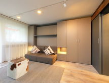 Jednostavna kuća s više apartmana "Grillon", na 4 kata. U četvrti Wiesti 650 m od centra mjesta Zermatt, mirno, povišeno mjesto, prema jugu. U kući: dizalo, spremište za skije, centralno grijanje. Pješačka staza do kuće. Supermarket 500 m, restoran 100 m, pekara 400 m, pješice 10 minuta do centra, autobusna postaja "Wiestibrücke" 260 m, željeznička postaja "Bahnhof Zermatt" 650 m. Uspinjača, najam skijaške opreme, postaja ski busa 350 m, škola skijanja, škola skijanja za djecu 750 m. Taksijem nije moguć prilaz do kuće.Interior