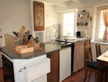"Gwenn (PPL104)", 3 -sobna polovica dvojne kuće 60 m2 na 2 etaže. Svrsishodno i udobno uređena: dnevni boravak/blagovaona s stolom za blagovanje, TV-om, radiom, DVD-om i peći na drva. Kuhinjska niša (pećnica, 4 staklokeramičke ploče za kuhanje, toster, kuhalo za vodu, el. aparat za kavu). Kada/WC. Potkrovlje 1 soba s kosim stropom s krovnim prozorom s 1 franc. krevetom (140 cm). 1 soba s kosim stropom s krovnim prozorom s 1 krevetom i 1 franc. krevetom (140 cm). Garnitura za sjedenje. Na raspolaganju: perilica za rublje, glačalo, visoka dječja stolica. Dodatna informacija: kuća za nepušače. Protupožarni alarm.- postrojenja