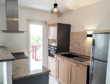 Bidart: Residence "Hameau des vagues". U četvrti Uhabia, 500 m od mora, 500 m od plaže. Za zajedničko korištenje: vrt. U kući: spremište za bicikle. Parking. Trgovina, restoran 500 m, bar, pekara, cafe 800 m, autobusna postaja 400 m, željeznička postaja "Biarritz" 4 km, pješčana plaža "l'Uhabia" 500 m. Golf teren (9 rupa) 4.5 km, škola jedrenja na dasci 500 m. U blizini: Bidaparc 300 m. Pješačke staze: La Rhune 15 km. Dodatna informacija: nema dizala. U istoj kući iznajmljuju se dodatni apartmani.Interior