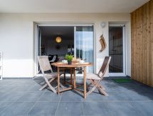 2 -sobni apartman 50 m2, u prizemlju. Komforno i lijepo uređen: dnevni boravak/blagovaona s TV-om (plosnatim TV ekranom). Izlaz na terasu. 1 soba s 2 kreveta (90 cm, dužina 200 cm). Otvorena kuhinja (3 Indukcione ploče, toster, kuhalo za vodu, mikrovalna pećnica, zamrzivač, el. aparat za kavu, Doze za mašinu za kavu (Nespresso) uz doplatu). Kada, odv. WC. El. grijanje. Terasa 20 m2, prema zapadu. Garnitura za sjedenje. Na raspolaganju: perilica za rublje, glačalo, sušilo za kosu. Internet (wireless LAN [WLAN], besplatan). Parking br. B12. Dodatna informacija: apartman za nepušače. Protupožarni alarm. 64125001385E4- Značajke smještaja