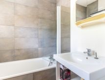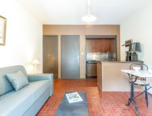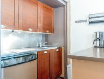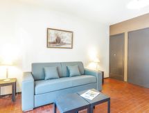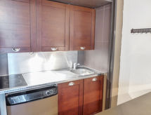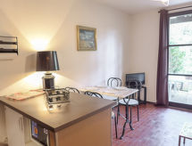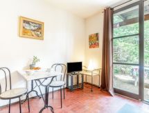 1 -sobni studio 30 m2, u prizemlju. Predsoblje s 1 x 2 kreveta na kat (90 cm, dužina 190 cm). Dnevni boravak/blagovaona s 1 kaučem za 2 osobe (140 cm, dužina 190 cm), TV-om. Izlaz na terasu. Kuhinjska niša (pećnica, perilica za suđe, 2 Indukcione ploče, mikrovalna pećnica). Kada/WC. Grijanje. Terasa, prema istoku, vrtna terasa 60 m2. Garnitura za sjedenje. Parking br. 14.- Značajke smještaja