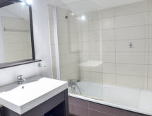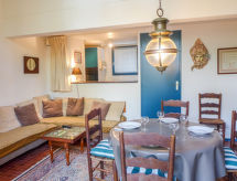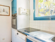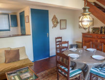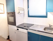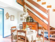 2 -sobna kuća u nizu 40 m2. Dnevni boravak/blagovaona s 2 kreveta (90 cm, dužina 190 cm), TV-om. Izlaz na terasu. Otvorena kuhinja (pećnica, perilica za suđe, 3 staklokeramičke ploče za kuhanje, mikrovalna pećnica). Odv. WC. Grijanje. Gornji kat: 1 soba s 1 franc. krevetom (140 cm, dužina 190 cm). Tuš/WC. Terasa, prema istoku, vrtna terasa 50 m2. Garnitura za sjedenje. Pogled na golf igralište. Parking br. 16.- Značajke smještaja