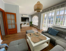 Lijepa, komforna obiteljska kuća "Hamptons", na 2 kata, godina izgradnje 1972, renovirana godine 2022. U samom mjestu, mirno, sunčano mjesto, 700 m od mora, u zelenom. Za samostalno korištenje: parcela 420 m2 (ograđena), vrt 200 m2 (ograđen), travnjak za sunčanje. Terasa (12 m2), vrtna garnitura za sjedenje, roštilj. U kući: wireless LAN [WLAN], prostorija za fitnes, centralno grijanje, klimatizacija, alarmni sustav. Parking uz kuću na parceli, javni parking. Supermarket 450 m, restoran 500 m, autobusna postaja 250 m, željeznička postaja 1 km, pješčana plaža 700 m.Interior