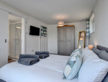 2 -sobni apartman na 1. katu. Prostrano i svijetlo, komforno i ukusno uređen: otvoreni dnevni boravak s TV-om, plosnatim TV ekranom i DVD-om. 1 bračna soba s tušem/WC-om, TV-om i DVD-om. 1 soba s 2 kreveta. Otvorena kuhinja (4 ploče za kuhanje, pećnica, mikrovalna pećnica, zamrzivač) s stolom za blagovanje. Kada/tuš/WC. Grijanje. Lijep pogled na more. Na raspolaganju: perilica za rublje, sušilica. Internet (wireless LAN [WLAN], besplatan). Dodatna informacija: kuća za nepušače. 1 kućni ljubimac / pas dozvoljen.- postrojenja