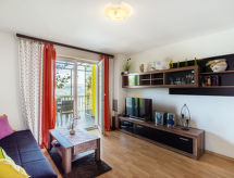 "Helena (MOD155)", 2 -sobni apartman 30 m2, u prizemlju. Dnevni boravak/blagovaona s 1 kaučem za 1 osobu i TV-om sa sat. prijemnikom (plosnatim TV ekranom), klima uređajem. Izlaz na terasu. 1 soba s 1 franc. krevetom. Otvorena kuhinja (2 ploče za kuhanje, toster, kuhalo za vodu, mikrovalna pećnica, el. aparat za kavu). Tuš/WC. Terasa 12 m2. Garnitura za sjedenje. Pogled na more. Na raspolaganju: Internet (wireless LAN [WLAN], besplatan). Dodatna informacija: apartman za nepušače. Vlastiti ulaz. Maks. popunjenost: 2 odraslih, 1 dijete do 12 godina.- postrojenja
