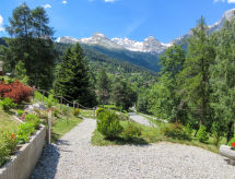 "Helene", 4 -sobni chalet 156 m2 na 2 etaže, prema istoku. Prostrano, komforno i lijepo uređen: veliki dnevni boravak/blagovaona s panoramskim prozorom s švedskom peći, stolom za blagovanje, kabelskom TV, plosnatim TV ekranom, muzičkom linijom i DVD-om. Izlaz na balkon, na terasu. Otvorena kuhinja (pećnica, perilica za suđe, 4 staklokeramičke ploče za kuhanje, mikrovalna pećnica, el. aparat za kavu, Doze za mašinu za kavu (Nespresso) uz doplatu, raclette roštilj, set za fondue (chinoise, sir)). Odv. WC. Donji kat: 1 soba s 2 kreveta (90 cm, dužina 200 cm). Izlaz u vrt, na terasu. 2 sobe, svaka soba s 1 franc. krevetom (160 cm, dužina 200 cm). Izlaz u vrt, na terasu. Kada/WC, tuš/WC. Vrtni roštilj, ležaljke (6). Vrlo lijep pogled na planine. Na raspolaganju: perilica za rublje, sušilica, dječji krevetić do 3 godine. Internet (wireless LAN [WLAN], besplatan). Parking (2 automobila). Dodatna informacija: apartman za nepušače.- Značajke smještaja