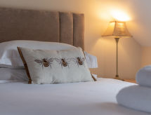 3 -sobna obiteljska kuća na 2 etaže. Prostrano i svijetlo, komforno i ukusno uređena: otvoreni dnevni boravak s TV-om, plosnatim TV ekranom i DVD-om. Izlaz na mjesto za sjedenje u vrtu. Otvorena kuhinja (4 ploče za kuhanje, pećnica, perilica za suđe, mikrovalna pećnica, zamrzivač) s stolom za blagovanje. Kada/tuš/WC. Grijanje. Gornji kat: 1 bračna soba s 1 bračnim krevetom. 1 soba s 2 kreveta. Kada/tuš/WC. Grijanje. Garnitura za sjedenje, vrtni roštilj. Lijep pogled na krajolik. Na raspolaganju: perilica za rublje, sušilica. Internet (wireless LAN [WLAN], besplatan). Dodatna informacija: kuća za nepušače. 3 kućna ljubimca / psa dozvoljena.- Značajke smještaja