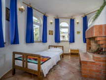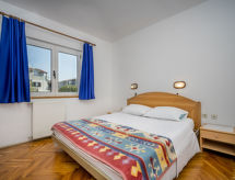 2 -sobni apartman 58 m2 na 1. katu. Objekt pogodan za 2 odraslih + 2 djece. Velika dnevno-spavaća soba s 2 kreveta (80 cm, dužina 190 cm), TV-om sa sat. prijemnikom i klima uređajem. Izlaz na terasu. 1 soba s 1 bračnim krevetom (2 x 80 cm, dužina 190 cm). Blagovaona. Izlaz na terasu. Otvorena kuhinja (4 ploče za kuhanje, pećnica, zamrzivač, el. aparat za kavu). Kada/WC. Grijanje toplim zrakom. Terasa 3 m2, terasa 4 m2. Garnitura za sjedenje. Pogled na vrt.- postrojenja