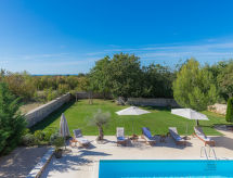 5 -sobna vila 200 m2 na 2 etaže. Dnevni boravak/blagovaona s otvorenim kaminom i TV-om sa sat. prijemnikom (plosnatim TV ekranom), klima uređajem. Izlaz na terasu. 1 soba s 1 bračnim krevetom (2 x 90 cm, dužina 200 cm), kadom/WC-om i klima uređajem. Izlaz na terasu. Otvorena kuhinja (pećnica, perilica za suđe, 4 staklokeramičke ploče za kuhanje, mikrovalna pećnica, zamrzivač). Odv. WC. Gornji kat: 1 soba 25 m2 s 1 bračnim krevetom (2 x 90 cm, dužina 200 cm), tušem/WC-om i klima uređajem. Izlaz na terasu. 1 soba s 2 kreveta (90 cm, dužina 200 cm), tušem/WC-om i klima uređajem. Izlaz na terasu. 1 soba s 2 kreveta (90 cm, dužina 200 cm), tušem/WC-om i klima uređajem. Terasa 20 m2 (natkrita), 2 terase 10 m2. Garnitura za sjedenje, ležaljke. Pogled na bazen. Na raspolaganju: dječji krevetić. Internet (wireless LAN [WLAN], besplatan). 1 kućni ljubimac / pas dozvoljen.- Značajke smještaja