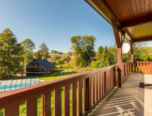 4 -sobna kuća 100 m2 na 2 etaže. Svijetlo, komforno i udobno uređena: otvoreni dnevni boravak s TV-om sa sat. prijemnikom. Izlaz na terasu. Kuhinja (4 ploče za kuhanje, kuhalo za vodu, mikrovalna pećnica, zamrzivač) s stolom za blagovanje. Odv. WC. Gornji kat: 3 sobe, svaka soba s 2 kreveta. Kada/WC. Mala terasa. Garnitura za sjedenje. Na raspolaganju: perilica za rublje, dječji krevetić. Internet (wireless LAN [WLAN], besplatan). Dodatna informacija: prikladno za obitelji. Kuća za nepušače. 2 kućna ljubimca / psa dozvoljena.- postrojenja