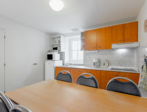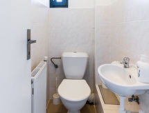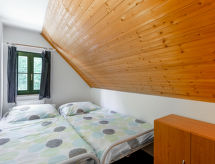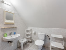4 -sobna kuća 100 m2 na 2 etaže. Svijetlo, komforno i udobno uređena: otvoreni dnevni boravak s TV-om sa sat. prijemnikom. Izlaz na terasu. Kuhinja (4 ploče za kuhanje, kuhalo za vodu, mikrovalna pećnica, zamrzivač) s stolom za blagovanje. Odv. WC. Gornji kat: 2 sobe 10 m2, svaka soba s 2 kreveta. 1 soba 13 m2 s 3 kreveta. Tuš/WC. Mala terasa. Garnitura za sjedenje. Na raspolaganju: perilica za rublje, dječji krevetić. Internet (wireless LAN [WLAN], besplatan). Dodatna informacija: prikladno za obitelji. Kuća za nepušače. 2 kućna ljubimca / psa dozvoljena.- postrojenja