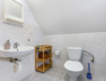 4 -sobna kuća 100 m2 na 2 etaže. Svijetlo, komforno i udobno uređena: otvoreni dnevni boravak s TV-om sa sat. prijemnikom. Izlaz na terasu. Kuhinja (4 ploče za kuhanje, perilica za suđe, kuhalo za vodu, mikrovalna pećnica, zamrzivač, el. aparat za kavu) s stolom za blagovanje. Odv. WC. Gornji kat: 1 soba s 1 bračnim krevetom. 1 soba s 2 kreveta. 1 soba s 1 x 2 kreveta na kat. Kada/WC. Mala terasa. Garnitura za sjedenje. Vrlo lijep pogled na planine i krajolik. Na raspolaganju: dječji krevetić. Internet (wireless LAN [WLAN], besplatan). Dodatna informacija: prikladno za obitelji. Kuća za nepušače. 2 kućna ljubimca / psa dozvoljena.- postrojenja