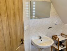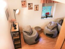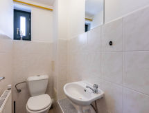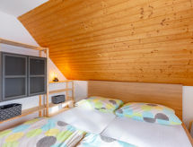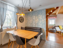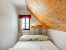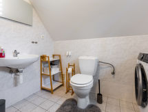 4 -sobna kuća 100 m2 na 2 etaže. Svijetlo, komforno i udobno uređena: otvoreni dnevni boravak s TV-om sa sat. prijemnikom (plosnatim TV ekranom). Izlaz na terasu. Kuhinja (4 ploče za kuhanje, perilica za suđe, toster, kuhalo za vodu, mikrovalna pećnica, zamrzivač, gril, el. aparat za kavu) s stolom za blagovanje. Odv. WC. Gornji kat: 3 sobe, svaka soba s 1 bračnim krevetom. Kada/WC. Mala terasa. Garnitura za sjedenje, vrtni roštilj. Na raspolaganju: perilica za rublje, sušilica, visoka dječja stolica, dječji krevetić. Internet (wireless LAN [WLAN], besplatan). Dodatna informacija: prikladno za obitelji. Kuća za nepušače. 2 kućna ljubimca / psa dozvoljena.- postrojenja
