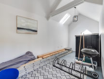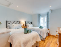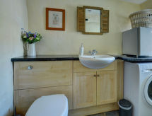3 -sobna obiteljska kuća na 2 etaže. Prostrano i svijetlo, komforno i ukusno uređena: otvoreni dnevni boravak s TV-om, plosnatim TV ekranom i DVD-om. Otvorena kuhinja (4 ploče za kuhanje, pećnica, mikrovalna pećnica, zamrzivač) s stolom za blagovanje. Odv. WC. Grijanje. Gornji kat: 1 bračna soba s 1 bračnim krevetom. 1 soba s 2 kreveta. Kada/tuš/WC. Grijanje. Garnitura za sjedenje. Na raspolaganju: perilica za rublje, sušilica. Internet (wireless LAN [WLAN], besplatan). Dodatna informacija: kuća za nepušače. 1 kućni ljubimac / pas dozvoljen.- Značajke smještaja
