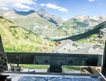 Le lac: Stambeni objekt "Horizon 2000". U zaseoku Les Almes, mirno, sunčano mjesto, direktno na skijalištu. U kući: spremište za skije, centralno grijanje. Trgovina, supermarket, restoran 200 m, pekara 600 m, autobusna postaja 500 m, vanjski bazen 600 m, jezero 600. Najam skijaške opreme 200 m, škola skijanja, klizalište 600 m. U blizini: Tignes Espace centre sportif 600 m, Lagon Piscine et Spa 600 m. Poznata skijališta u blizini: Espace Killy.Interior