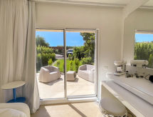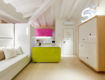 Lijepo, komforno turističko naselje "Puntaldia". 10 km od centra mjesta San Teodoro, 300 m od mora, 400 m od plaže, na golf terenu. Za zajedničko korištenje: veliki, njegovani vrt (nije ograđen) - travnjak i bilje, travnjak za sunčanje, bazen (25 x 10 m, sezonska dostupnost: 15.Jun. - 15.Sep.). Vanjski tuš, tenis (uz doplatu), dječje igralište. U kompleksu: bar, bistro, trgovina, boutique. 20 m dugački prilaz autom do kuće. Supermarket 200 m, pješčana plaža 300 m. Marina 300 m, golf teren (9 rupa) 300 m. U blizini: Aeroporto Olbia - Costa Smeralda 23 km, Porto Isola Bianca 30 km. Dodatna informacija: preporučljiv vlastiti prijevoz.Interior