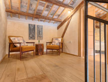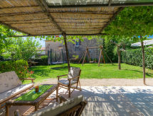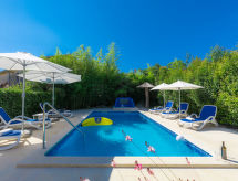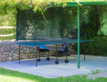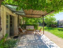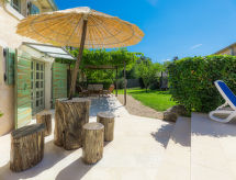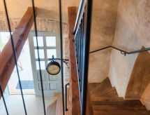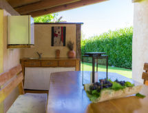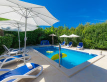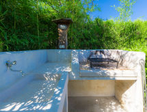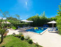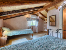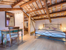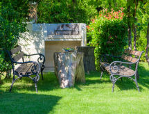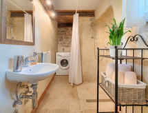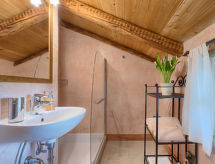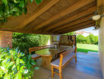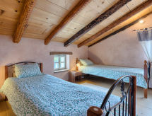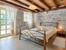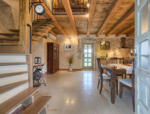 4 -sobna kuća 130 m2 na 2 etaže. Rustikalno uređena: dnevni boravak s otvorenim kaminom, TV-om sa sat. prijemnikom, međunarodnim TV kanalima i DVD-om. Izlaz na terasu. 1 soba s 1 franc. krevetom (160 cm). Izlaz na terasu. Otvorena kuhinja (1 ploča za kuhanje, pećnica, perilica za suđe, 3 plamena za kuhanje, toster, kuhalo za vodu, mikrovalna pećnica, zamrzivač, el. aparat za kavu). Izlaz na terasu. Tuš/WC. Grijanje, klima uređaj. Gornji kat: 1 soba s kosim stropom s 1 franc. krevetom (160 cm), klima uređajem. 1 soba s kosim stropom s 2 kreveta i klima uređajem. Tuš/WC. Grijanje, klima uređaj. Ležaljke. Na raspolaganju: perilica za rublje, glačalo. Internet (wireless LAN [WLAN], besplatan). Dodatna informacija: apartman za nepušače.- postrojenja