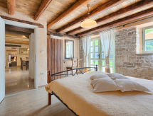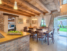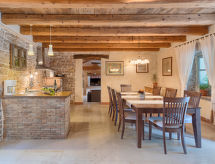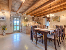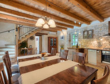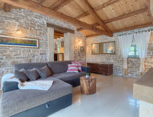 Obiteljska kuća "Hrelja (ROJ418)". 5 km od centra mjesta Zminj, 15 km od centra mjesta Pazin, 25 km od centra mjesta Rovinj, 25 km od mora. Za samostalno korištenje: parcela 1'800 m2 (ograđena) - travnjak i drveće, bazen (7 x 3 m, 24 m2, 135 cm dubok, sezonska dostupnost: 01.May. - 05.Nov.). Vanjski tuš, stolni tenis, odbojka, igralište za odbojku, terasa (15 m2), vrtna garnitura za sjedenje, roštilj (ljuljačka). U kući: Bicikle na raspolaganju. Parking (za 2 automobila) na parceli. Trgovina 1 km, supermarket 6 km, stjenovita plaža 25 km. Marina 30 km.Interior