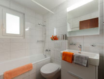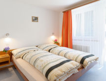 4 -sobni apartman 63 m2 na 1. katu, prema jugozapadu. Jednostavno i udobno uređen: dnevni boravak s TV-om i radiom. Izlaz na balkon. 1 soba s 2 kreveta (90 cm, dužina 190 cm). Izlaz na balkon. 1 soba s 1 krevetom (90 cm, dužina 190 cm). 1 soba s 1 bračnim krevetom (2 x 90 cm, dužina 200 cm). Izlaz na balkon. Kuhinja (pećnica, 3 staklokeramičke ploče za kuhanje, kuhalo za vodu, zamrzivač, el. aparat za kavu) s stolom za blagovanje. Kada/WC. Tapison. Veliki balkon, prema jugu i prema zapadu. Balkonski namještaj. Lijep pogled na Matterhorn. Na raspolaganju: Internet (wireless LAN [WLAN]). Dodatna informacija: apartman za nepušače.- postrojenja