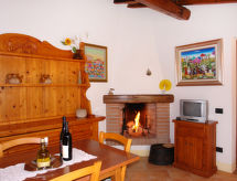 "Cieloterra e Veranda", 4 -sobna polovica dvojne kuće 96 m2 na 2 etaže, u prizemlju. Renovirana, ukusno uređena: dnevno-spavaća soba s 1 kaučem za 2 osobe, otvorenim kaminom i TV-om sa sat. prijemnikom. Dnevni boravak/blagovaona s otvorenim kaminom i TV-om sa sat. prijemnikom. 1 bračna soba s tušem/WC-om. Kuhinjska niša (4 ploče za kuhanje, pećnica, zamrzivač). Gornji kat: 1 bračna soba. Tuš/WC. Vrt. Garnitura za sjedenje, vrtni roštilj. Panoramski pogled. Na raspolaganju: visoka dječja stolica. Internet (wireless LAN [WLAN], uz doplatu). Parking. 1 kućni ljubimac / pas dozvoljen. Zasebne stambene jedinice nisu interno povezane.- postrojenja